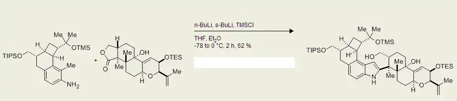 La síntesis de Madelung modificada por Smith, también llamada síntesis de indol de Smith, fue descubierta en 1986 por Amos Smith y su equipo de investigación. Esta síntesis emplea una reacción de condensación de reactivos de organolitio derivados de anilinas de 2-alquil-N-trimetilsililo por ésteres o ácidos carboxílicos para producir indoles sustituidos. Esta síntesis ha demostrado ser aplicable a una amplia variedad de anilinas sustituidas, incluidas aquellas con grupos alquilo, metoxi y haluro, y puede reaccionar con ésteres o lactonas no enolizables para producir intermedios de N-litiocetamina. Estos intermedios luego se someten a una olefinización Peterson de heteroátomo intramolecular para producir indolininas, que luego se tautomerizan a indoles 2-sustituidos. La síntesis de indol Smith es una de las modificaciones más importantes a la síntesis de Madelung.