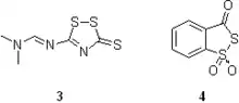 - 3-(Dimethylaminomethylidene)amino)-3H-1,2,4-dithiazole-3-thione, DDTT (3) provee cinética rápida de sulfuración y alta estabilidad en la solución.[74][94][95] El reactivo está disponible de varias fuentes.[96][97]