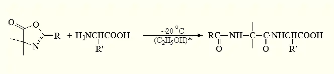 La reacción con un segundo aminoácido permite que el anillo se abra, formando posteriormente un dipéptido insaturado acilado.
