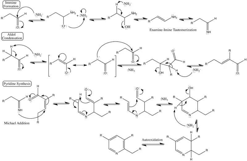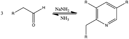 La Síntesis de piridina de Chichibabin es un método para sintetizar anillos de piridina. En su forma general, la reacción puede ser descripta como una reacción de condensación entre aldehídos, cetonas o compuestos Carbonilos α,β-Insaturados o cualquier combinación de los anteriores, en amoníaco o en otros derivados del amoníaco.[1] La reacción fue publicada por Alekséi Chichibabin en 1924.[2] La siguiente imagen muestra la forma general de la reacción: