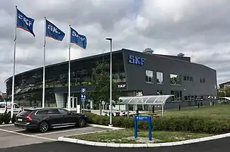 El Grupo SKF, registrado como AB SKF, es una empresa multinacional sueca fundada en 1907, con sede en Gotenburgo, Suecia, con 43 360 empleados, dedicada al diseño y fabricación de rodamientos, sellos, sistemas de lubricación, productos y sistemas para mantenimiento, productos mecatrónicos, y de transmisión de potencia,[2] entre otros servicios. SKF es una de las mayores empresas suecas, formando parte en la Bolsa de Estocolmo de su índice bursátil OMX-30 / Nasdaq Nordic, y según Forbes se encuentra entre las mayores compañías a nivel global.[3] La compañía es uno de los mayores fabricantes de rodamientos del mundo,[4] y cuenta con 108 centros de fabricación, y presencia comercial en 130 países. El fabricante de automóviles Volvo, el otro gran empleador en la ciudad de Gothenburg, fue inicialmente una subsidiaria propiedad del Grupo SKF, hasta que en 1935 se desprendió de ella. De hecho, en latín, "Volvo" significa "Yo ruedo", cuya connotación se creó por la dedicación del grupo a la fabricación de rodamientos.