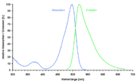 El SYBR Green es un compuesto orgánico de fórmula química C32H37N4S, que forma parte del grupo de las cianinas asimétricas (fluoróforos 4S) y que se utiliza en biología molecular.[2] El SYBR Green no es un agente intercalante, ya que no se inserta en el espacio entre dos pares de bases, sino que se asocia a la molécula de ADN interactuando con la hendidura menor del ADN.