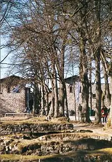 Originalmente, las murallas fueron construidas en un aparejo de piedra madera, pero a mediados del siglo II la fábrica fue sustituida por otra de piedra y mortero sobre un terraplén de tierra. La reconstrucción actual corresponde a esta última fase, aunque la segunda fase puede verse en la retentura del castellum. En cualquier caso, las murallas de la fortaleza estuvieron siempre precidas por una doble fossa o foso doble.