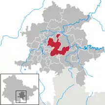 Se encuentra ubicado al sur de la ciudad de Weimar, y a poca distancia al norte de la frontera con el estado de Baviera.