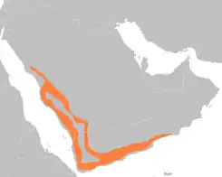 Es una ecorregión de desierto que ocupa 274.700 kilómetros cuadrados por debajo de los 2.000 msnm en las montañas del sur de la península arábiga, desde el suroeste de Arabia Saudita, pasando por el oeste y el sur de Yemen, hasta el extremo sur de Omán. A mayor altitud se encuentra la ecorregión denominada monte alto del suroeste de Arabia; limita además con el desierto costero nublado de la península arábiga, al sur, y con el desierto y semidesierto tropicales del mar Rojo, al norte.