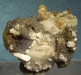Suele encontrarse asociado a otros minerales como: calcita, dawsonita, weloganita, criolita, pirita, galena, barita, ilmenorrutilo, ankerita, siderita, cuarzo, albita, microclina, analcima, sodalita, pectolita, dolomita o egirina.