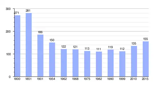 Los datos demográficos contemplados en este gráfico de la comuna de Saint-Etienne-la-Cigogne[4]se han cogido de 1800 a 1999 de la página francesa EHESS/Cassini, y los demás datos de la página del INSEE.[5]