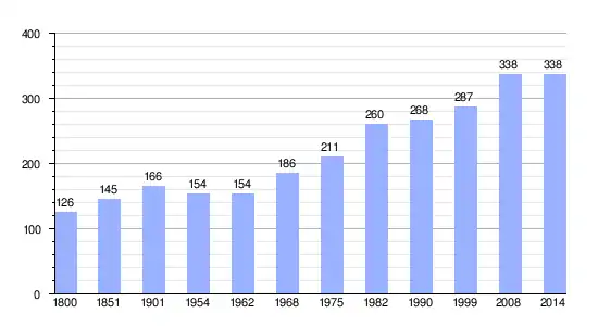 Los datos demográficos contemplados en este gráfico de la comuna de Saint-Aignan-des-Gués[4] se han cogido de 1800 a 1999 de la página francesa EHESS/Cassini, y los demás datos de la página del INSEE.[5]
