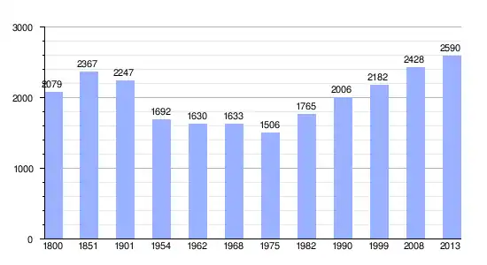 Gráfica de evolución demográfica de Saint-Amand-Villages entre 1800 y 2013 |