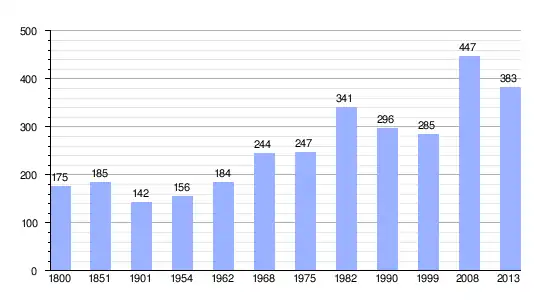 Gráfica de evolución demográfica de Saint-Antoine entre 1800 y 2013 |