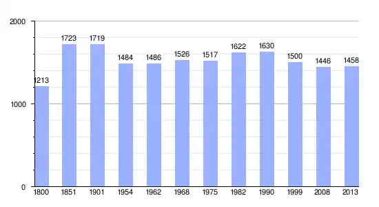 Gráfica de evolución demográfica de Saint-Aulaye-Puymangou entre 1800 y 2013 |