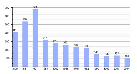Los datos demográficos contemplados en este gráfico de la comuna de Saint-Bonnet-de-Montauroux[4] se han cogido de 1800 a 1999 de la página francesa EHESS/Cassini, y los demás datos de la página del INSEE.[5]