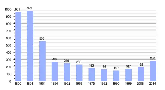 Gráfica de evolución demográfica de Saint-Cernin entre 1800 y 2014 |
