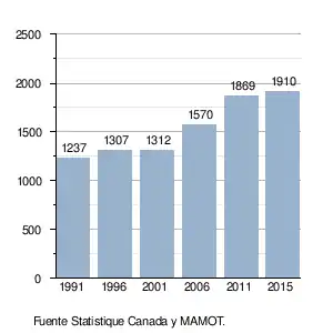 b. Statistique Canada, Profils des communautés de 2001 : Saint-Cyprien-de-Napierville, Ottawa. 01/02/07. Consultado el 22 de marzo de 2015. (en francés)