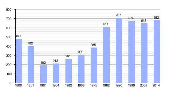 Los datos demográficos contemplados en este gráfico de la comuna de Saint-Cyr-du-Ronceray[4] se han cogido de 1800 a 1999 de la página francesa EHESS/Cassini, y los demás datos de la página del INSEE.[5]
