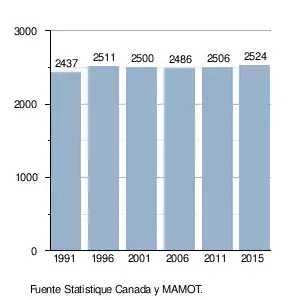 b. Statistique Canada, Profils des communautés de 2001 : Saint-Damase, VL y Saint-Damase, P, Ottawa. 01/02/07. Consultado el 7 de octubre de 2015. (en francés)