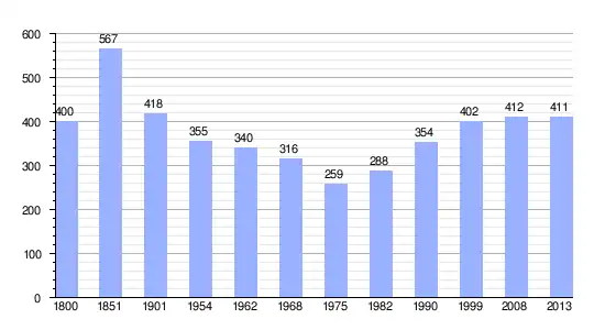 Gráfica de evolución demográfica de Saint-Denis-du-Pin entre 1800 y 2013 |