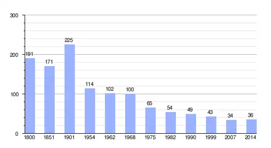 Gráfica de evolución demográfica de Saint-Didier-d'Allier entre 1800 y 2014 |