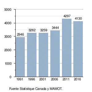 b. Statistique Canada, Profils des communautés de 2001 : Saint-Donat (municipalité), Ottawa. 01/02/07. Consultado el 23 de septiembre de 2016. (en francés)