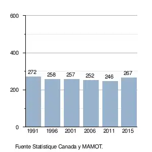 b. Statistique Canada, Profils des communautés de 2001 : Saint-Gérard-Majella, P, Ottawa. 01/02/07. Consultado el 9 de octubre de 2015. (en francés)