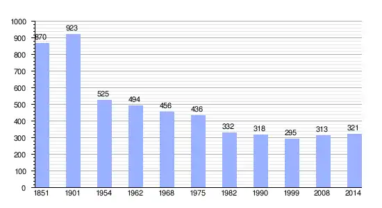 Gráfica de evolución demográfica de Saint-Gelven entre 1851 y 2014 |
