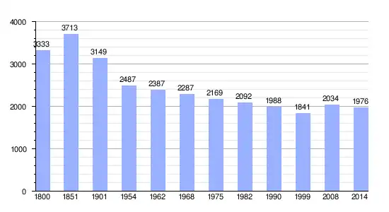 Los datos demográficos contemplados en este gráfico de la comuna de Saint-Geniez-d'Olt[4] se han cogido de 1800 a 1999 de la página francesa EHESS/Cassini, y los demás datos de la página del INSEE.[5]