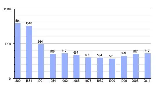 Gráfica de evolución demográfica de Saint-Georges-d'Aunay entre 1800 y 2014 |
