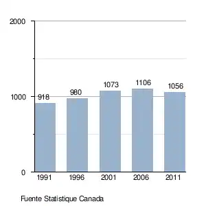 b. Statistique Canada, Profils des communautés de 2001 : Saint-Georges-de-Clarenceville, Ottawa. 01/02/07. Consultado el 19 de agosto de 2014. (en francés)