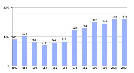 Gráfica de evolución demográfica de Saint-Georges-des-Gardes entre 1800 y 2013 |