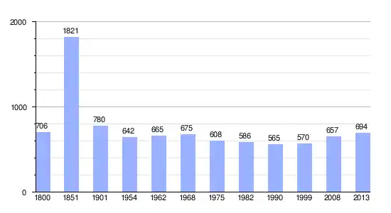 Gráfica de evolución demográfica de Saint-Georges-des-Sept-Voies entre 1800 y 2013 |