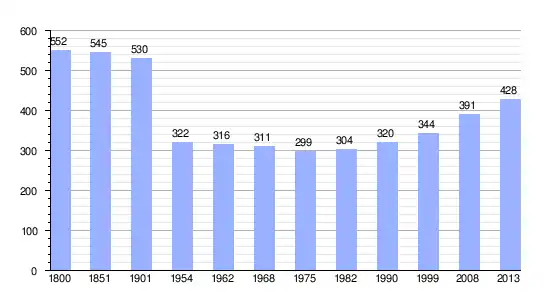 Los datos demográficos contemplados en este gráfico de la comuna de Saint-Georges-du-Bois[4] se han cogido de 1800 a 1999 de la página francesa EHESS/Cassini, y los demás datos de la página del INSEE.[5]