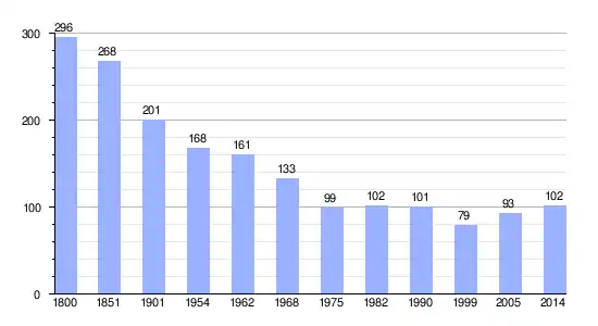 Los datos demográficos contemplados en este gráfico de la comuna de Saint-Georges-en-Auge[4] se han cogido de 1800 a 1999 de la página francesa EHESS/Cassini, y los demás datos de la página del INSEE.[5]