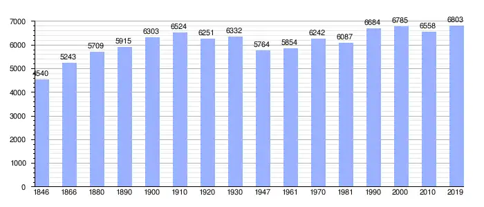Todos los datos históricos relativos al actual municipio, el siguiente gráfico refleja su evolución demográfica, incluyendo municipios después de efectuada la fusión el 1 de enero de 1977.