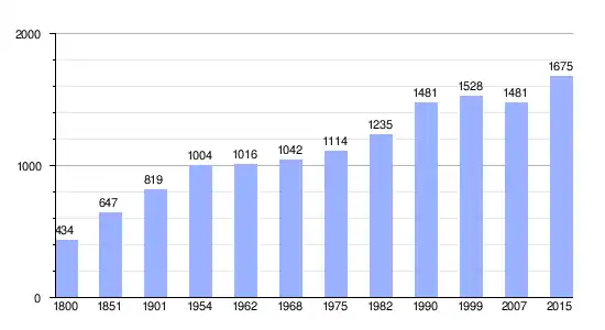 Los datos demográficos contemplados en este gráfico de la comuna de Saint-Germain-Village[4]se han cogido de 1800 a 1999 de la página francesa EHESS/Cassini, y los demás datos de la página del INSEE.[5]