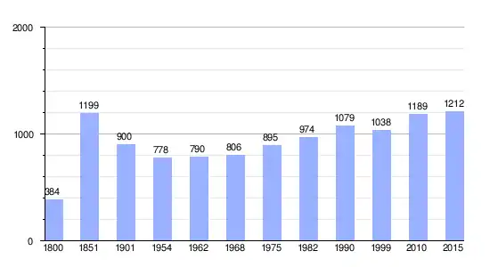 Los datos demográficos contemplados en este gráfico de la comuna de Saint-Germain-de-Marencennes[4]se han cogido de 1800 a 1999 de la página francesa EHESS/Cassini, y los demás datos de la página del INSEE.[5]