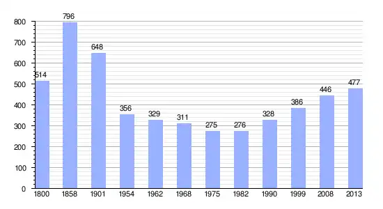 Gráfica de evolución demográfica de Saint-Germain-la-Chambotte entre 1800 y 2013 |