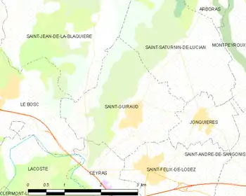 Saint-Guiraud es una población y comuna francesa, situada en la región de Occitania, departamento de Hérault, en el distrito de Lodève y cantón de Gignac.