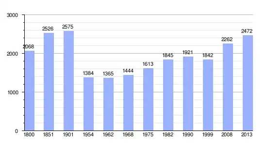 Los datos demográficos contemplados en este gráfico de la comuna de Saint-Herblon[4] se han cogido de 1800 a 1999 de la página francesa EHESS/Cassini, y los demás datos de la página del INSEE.[5]