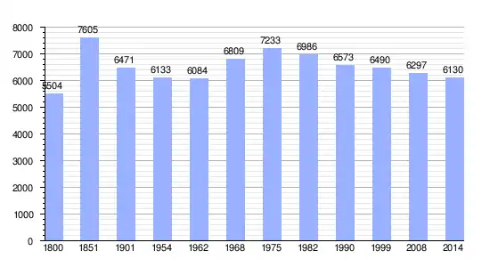 Los datos entre 1800 y 2014 son el resultado de sumar los parciales de las tres comunas que forman la nueva comuna de Saint-Hilaire-du-Harcouët, cuyos datos se han cogido de 1800 a 1999, para las comunas de Saint-Hilaire-du-Harcouët,[3] Saint-Martin-de-Landelles[4] y Virey[5] de la página francesa EHESS/Cassini. Los demás datos se han cogido de la página del INSEE.[6]