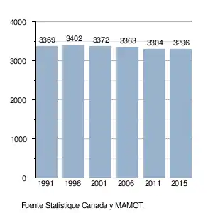 b. Statistique Canada, Profils des communautés de 2001 : Saint-Jean-Port-Joli, Ottawa. 01/02/07. Consultado el 15 de julio de 2015. (en francés)