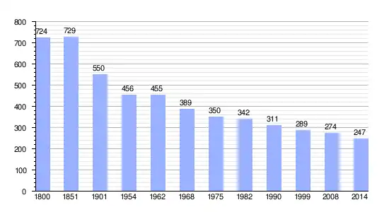 Los datos demográficos contemplados en este gráfico de la comuna de Saint-Jean-du-Corail[4] se han cogido de 1800 a 1999 de la página francesa EHESS/Cassini, y los demás datos de la página del INSEE.[5]