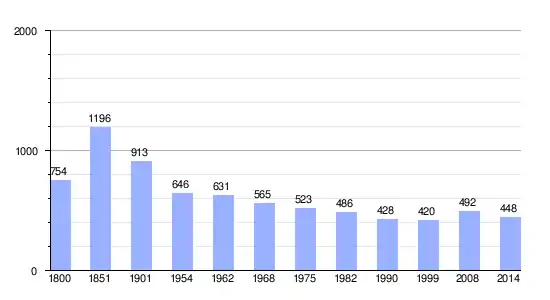 Los datos demográficos contemplados en este gráfico de la comuna de Saint-Jean-sur-Erve[4] se han cogido de 1800 a 1999 de la página francesa EHESS/Cassini, y los demás datos de la página del INSEE.[5]