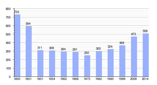 Los datos demográficos contemplados en este gráfico de la comuna de Saint-Julien-de-Mailloc[4] se han cogido de 1800 a 1999 de la página francesa EHESS/Cassini, y los demás datos de la página del INSEE.[5]