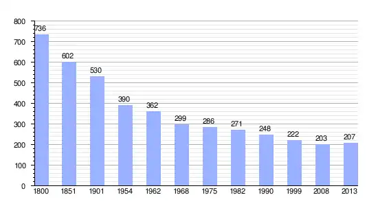 Los datos demográficos contemplados en este gráfico de la comuna de Saint-Just[4] se han cogido de 1800 a 1999 de la página francesa EHESS/Cassini, y los demás datos de la página del INSEE.[5]