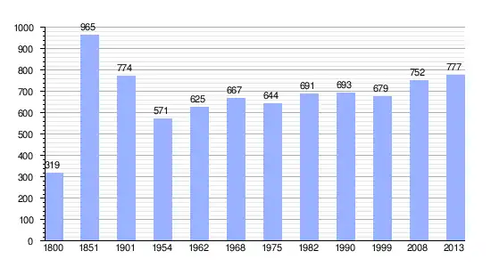 Los datos demográficos contemplados en este gráfico de la comuna de Saint-Lézin[4] se han cogido de 1800 a 1999 de la página francesa EHESS/Cassini, y los demás datos de la página del INSEE.[5]