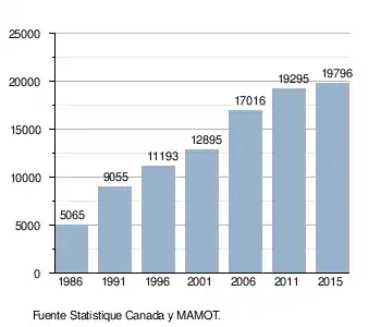 b. Statistique Canada, Profils des communautés de 2001 : Saint-Lazare, Ottawa. 01/02/07. Consultado el 5 de julio de 2015. (en francés)