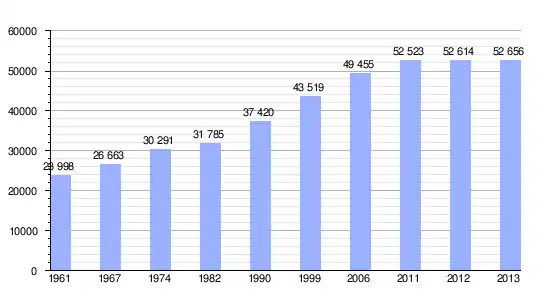 Gráfica de evolución demográfica de Saint-Louis (Reunión) entre 1961 y 2013 |