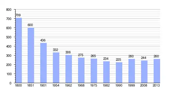 Los datos demográficos contemplados en este gráfico de la comuna de Saint-Martin-Don[4] se han cogido de 1800 a 1999 de la página francesa EHESS/Cassini, y los demás datos de la página del INSEE.[5]