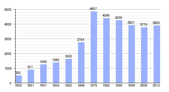Gráfica de evolución demográfica de Saint-Martin-au-Laërt entre 1800 y 2013 |