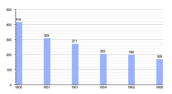 Los datos demográficos contemplados en este gráfico de la comuna de Saint-Martin-de-Fresnay[5]se han cogido de 1800 a 1968 de la página francesa EHESS/Cassini.